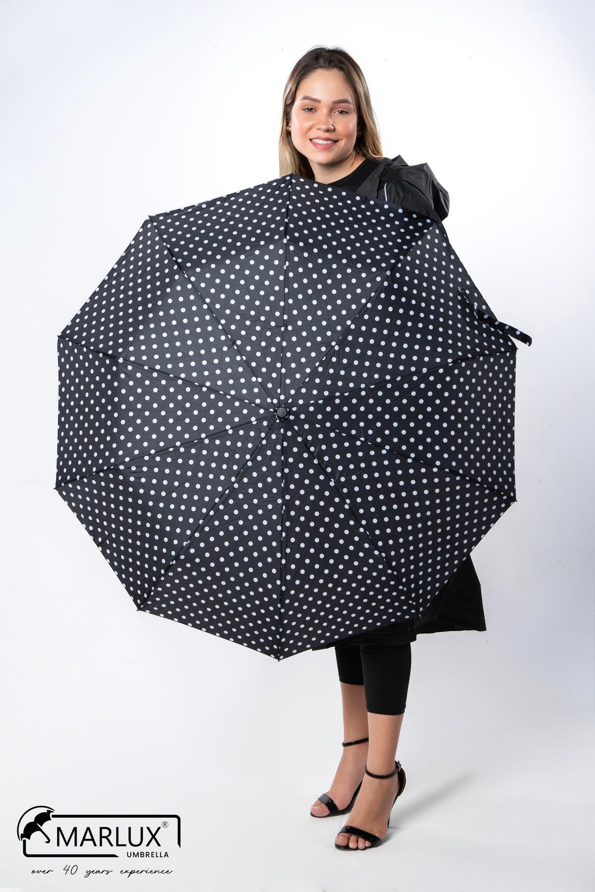 Marlux Siyah Beyaz Benekli Fiber 10 Telli Tam Otomatik Rüzgara Dayanıklı Şemsiye M24MAR718LD (M24MAR718LDR01)